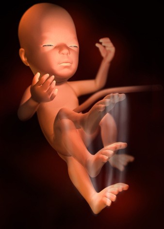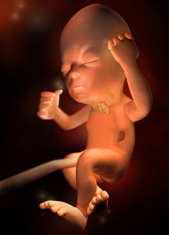 胎兒體重約900克左右,身長約38厘米,坐高約25厘米。胎兒此時已經(jīng)長出頭發(fā),眼睛可以睜開。男孩的睪丸尚未降下來女孩則可以看到突起的小陰唇。這時胎兒的聽覺神經(jīng)系統(tǒng)已發(fā)育完全,對外界聲音刺激的反應(yīng)更為明顯。