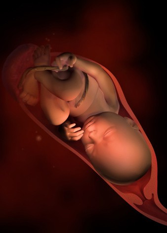 胎兒體重大約2300克,坐高約為30厘米。此時胎兒已將身體轉為頭朝下的姿勢,頭部已經進入骨盆。這時胎位是否正常直接關系到孕婦是否能正常分娩,如果胎兒臀部向下體位或是有其它姿勢的胎位不正,醫生會采取措施進行糾正。