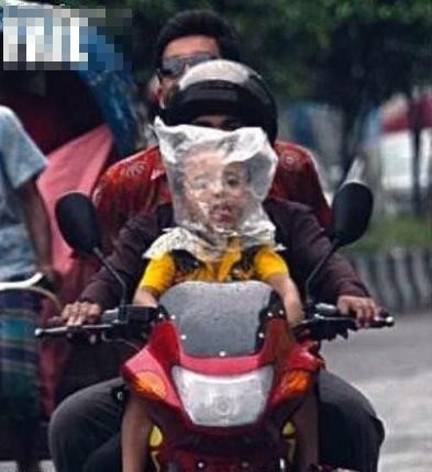 男人帶孩子的后果之七:帶著孩子騎車狂奔:)