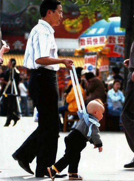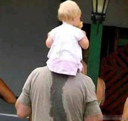 男人帶孩子的后果之四:背著孩子尿尿:)