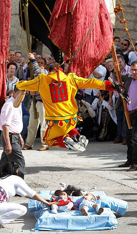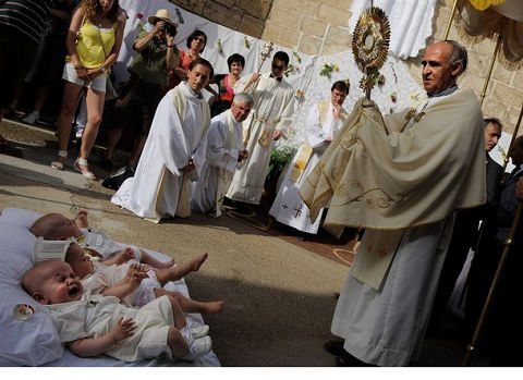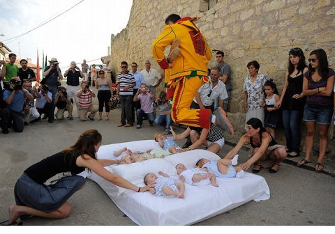 看著這些有些怪異的跨嬰兒驅魔儀式,不知道中國媽媽有沒有膽量將自己的寶寶放在毯子上面,讓宗教人士 從寶寶身上跨過去,好緊張啊!