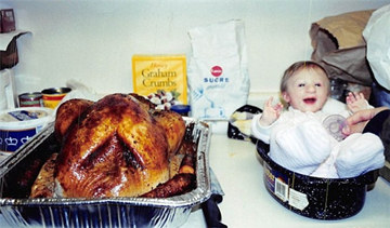 上圖為一歲的約迪·茹爾丹-布羅姆利挨著感恩節火雞,繼續對醫生(的定論)PIAPIAPIA打臉。