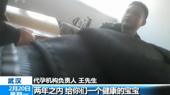 代孕機(jī)構(gòu)負(fù)責(zé)人 王先生:包成功,簡(jiǎn)單一點(diǎn),就是我們?cè)?年之內(nèi),給你們(生)一個(gè)健康的寶寶,到時(shí)候抱孩子就完事了,不管出什么情況,比如說(shuō)到時(shí)候孩子畸形呀,不健康呀,這些情況,通通我們來(lái)處理。